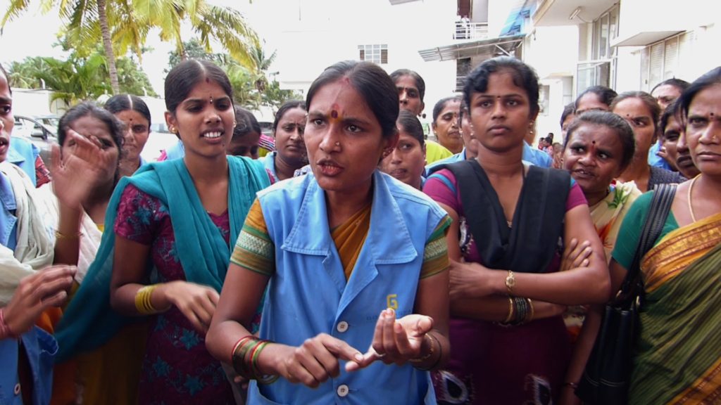 그리하여 인도의 의류 공장에는 내일의 해가 떴는가. 2015년 20회 서울인권영화제 상영작 <메이드 인 인디아: 옷, 인도, 여성>(2014, 이하 <메이드 인 인디아>)은 인도의 세계 최대 의류 수출기지 뱅갈루루의 여성 노동자들을 다룬다. 이곳의 약 50만 여성이 의류제조업에 종사하고 있으며, 이들은 하루에 약 194루피(3천 원)를 번다. 15살 때부터 의류 공장에서 근무한 야무나는 해를 거듭할수록 열악해지는 근무 환경에 혀를 내두른다. 이들이 겪는 부조리에 남편과 가족은 아무런 힘을 보태주지 않는다. 도리어 가장 안전해야 할 집에서는 남편의 폭력이 계속된다. 안에서는 도와주는 이 없이 내밀한(사실은 모두가 알고 있는) 폭력을 견뎌야 했고, 밖에서는 해고를 두려워하며 부당한 착취와 모욕을 감내해야 했다. 기득권을 가진 자들(사측)은 걸핏하면 사람을 자르거나 학대한다. 비과학적인 물량을 제공하며 노동력을 착취한다. 이유 없이 침을 뱉으며 모독한다. 고수익과 고효율을 추구하는 기업의 자본주의 앞에서 이들의 인권은 차후의 논의 사항으로 밀려날 수밖에 없는 것이다. 여성 노동자들은 두 손과 두 발과, 50만의 노동력을 보태면서도 여전히 외부자로 취급된다.