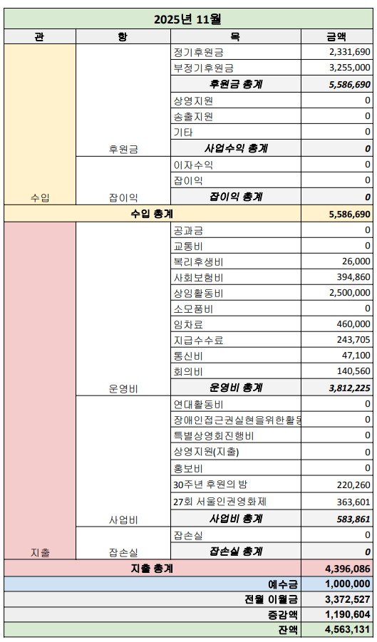 후원주점 준비와 27회 서울인권영화제 준비로 사업비 지출이 조금 있었습니다.